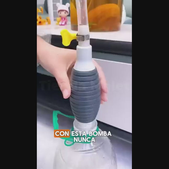 Gire la flecha indicadora en la bola de goma a la posición hacia abajo. Inserte la tubería superior de forma segura en el tanque de combustible. Coloque el tubo inferior en el tambor de aceite. Apriete suavemente la bola de goma de 5 a 10 veces. Una vez que la bola de goma está pellizcada, el líquido fluirá automáticamente.
