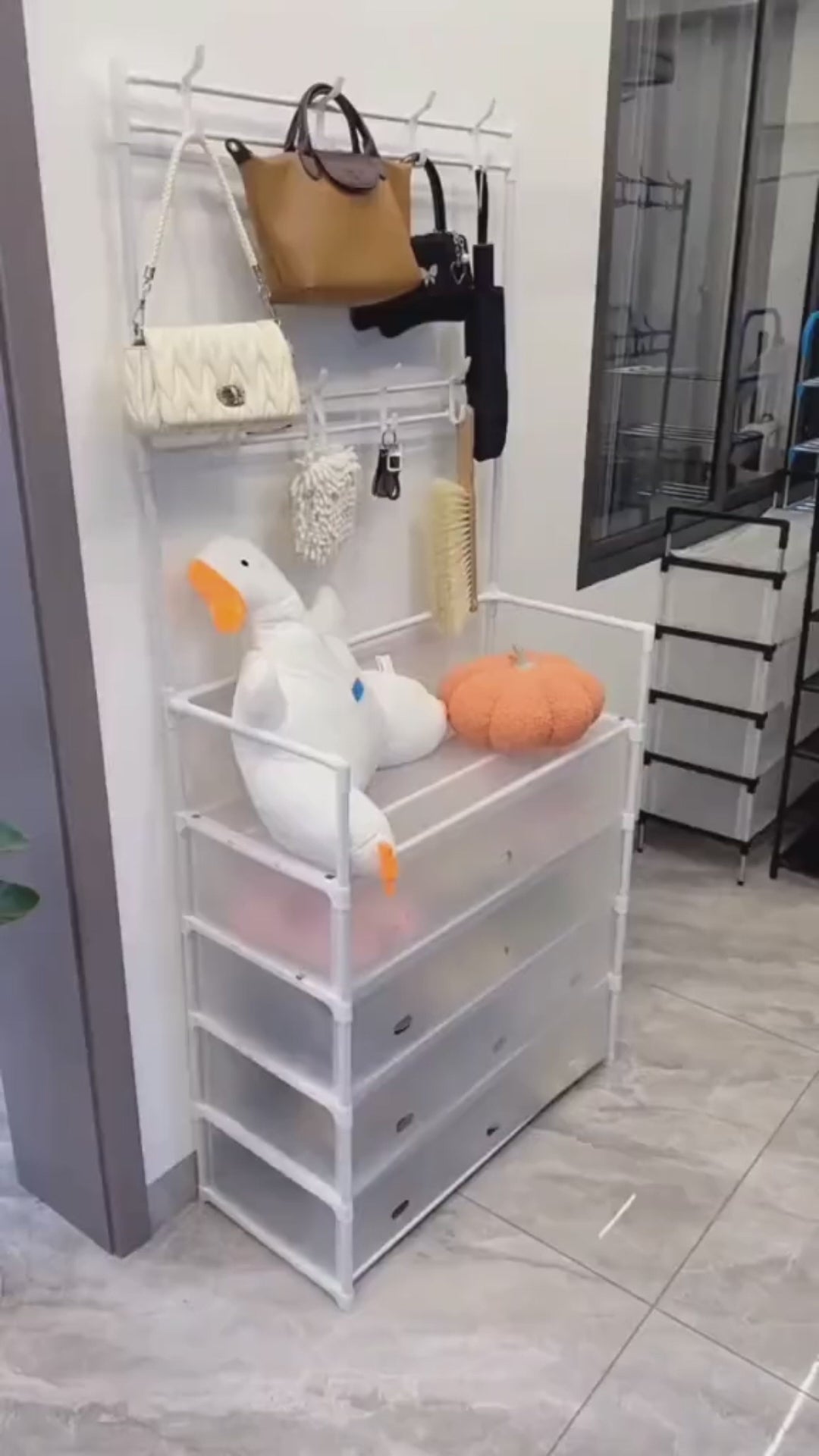 ✅ Perchero superior con múltiples ganchos para bolsos, abrigos o sombreros.