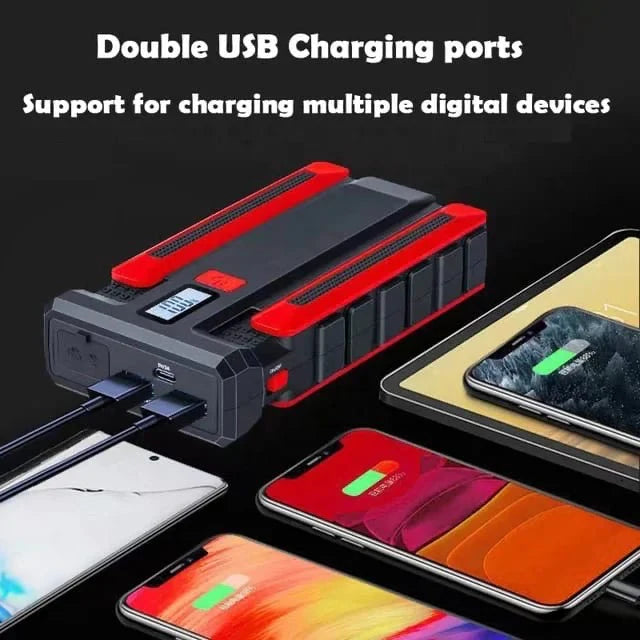 Con nuestro Jumper multifuncional de 1000A podrás jumpear tu batería en segundos para ponerlo en marcha nuevamente sin necesidad de molestar otro vehículo.