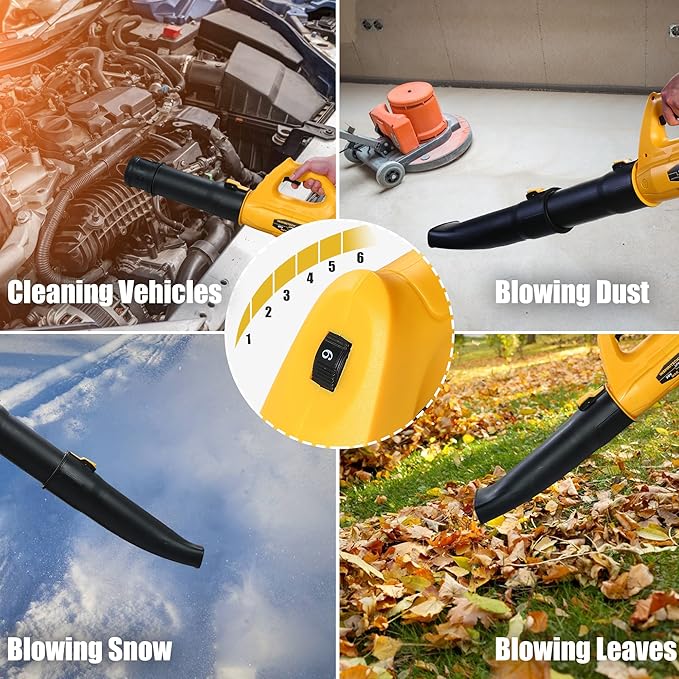 - 📌 【Este soplador eléctrico de hojas tiene una gran perforación】 Con un motor que funciona con 20.000 RPM y ofrece velocidades de hasta 85 millas por hora y volumen de aire de hasta 360 CFM, el CB-X10 hace que sea mucho más fácil limpiar los desechos de superficies duras como tu entrada, terraza o patio. El alto CFM es esencial para limpiar hojas de forma más eficiente y limpiar artículos más pesados, como palos y ramas.